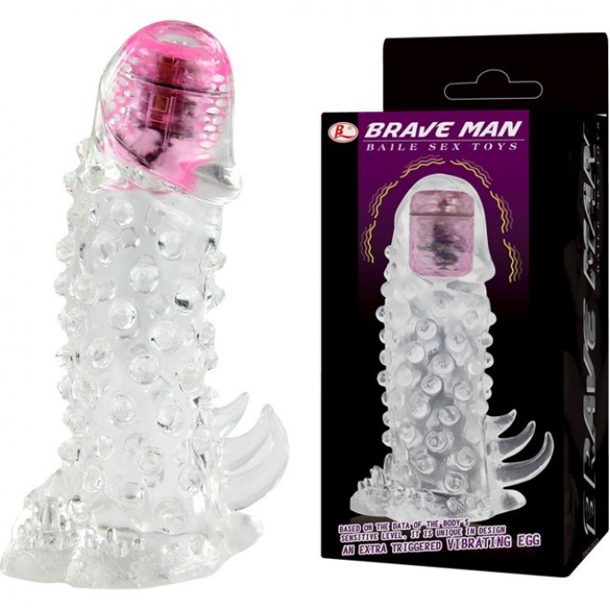 Насадка удлинитель с пупырышками, усиками и вибропулькой BI-026203A-0702
